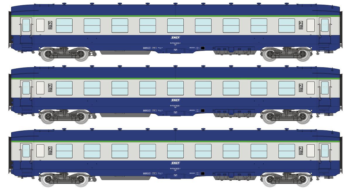 REE H0 SNCF Liegewagen-Set DEV AO B9c9, blau/grau, Ep. IV-V, 3-tlg.