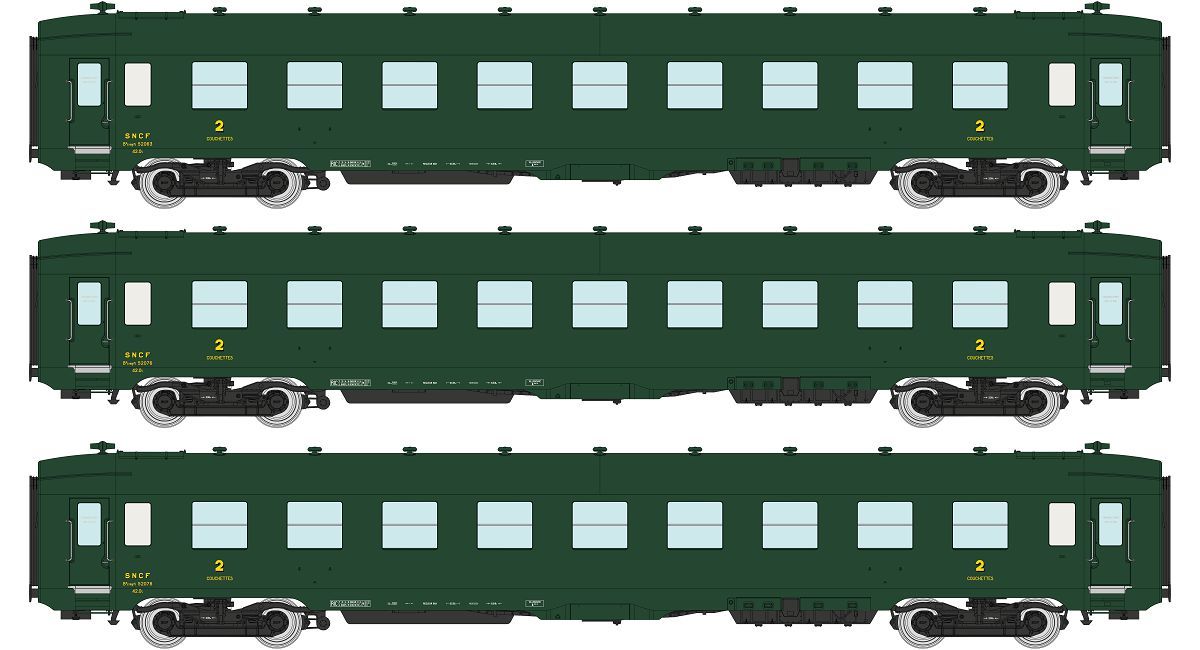REE H0 SNCF Liegewagen-Set DEV AO B9c9myfi, grün, Ep. IIIb, 3-tlg.